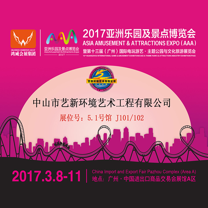 - 尊敬的艺新新老客户与游艺行业同行:2018亚洲乐园及景点博览会,暨第十四届(广州)国际电玩游艺·主题公园与文化旅游展览会。将于4月3日至5日举行!艺新艺术与您“...2018.03.29